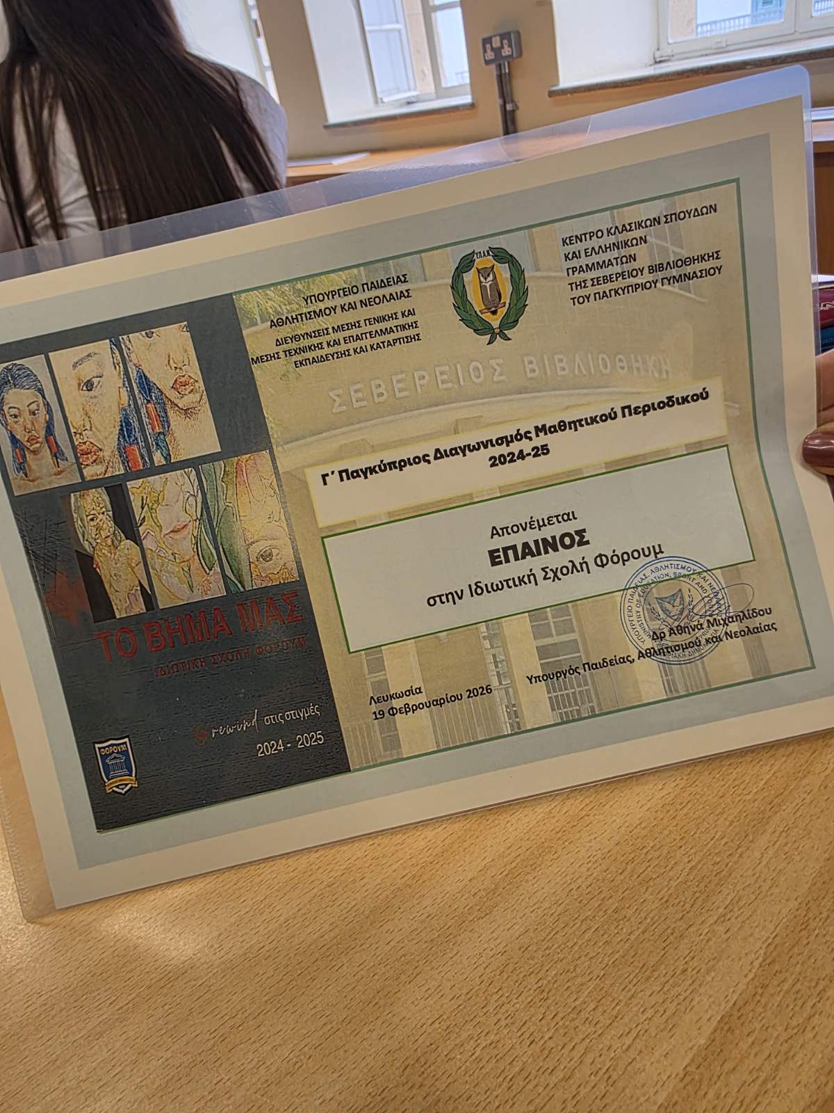 Η Τελετή Βράβευσης του Παγκύπριου Διαγωνισμού Μαθητικού Περιοδικού, για τη Σχολική Χρονιά 2024-2025, πραγματοποιήθηκε την Πέμπτη, 19 Φεβρουαρίου 2026, στη Σεβέρειο Βιβλιοθήκη του Παγκυπρίου Γυμνασίου.