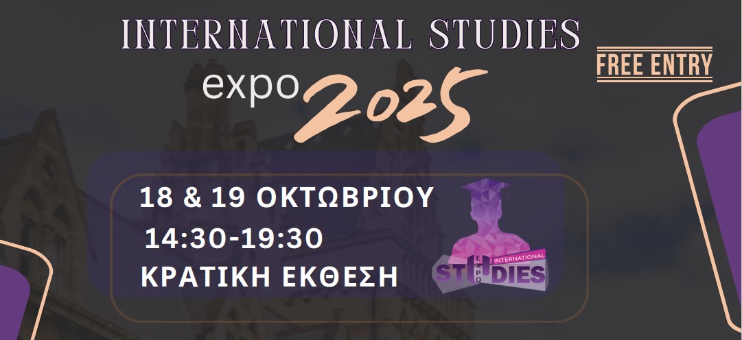 Το Σάββατο και την Κυριακή 18 & 19 Οκτωβρίου επισκεφθείτε την έκθεση International Studies Expo 2025 και ενημερωθείτε για σπουδές στο εξωτερικό.