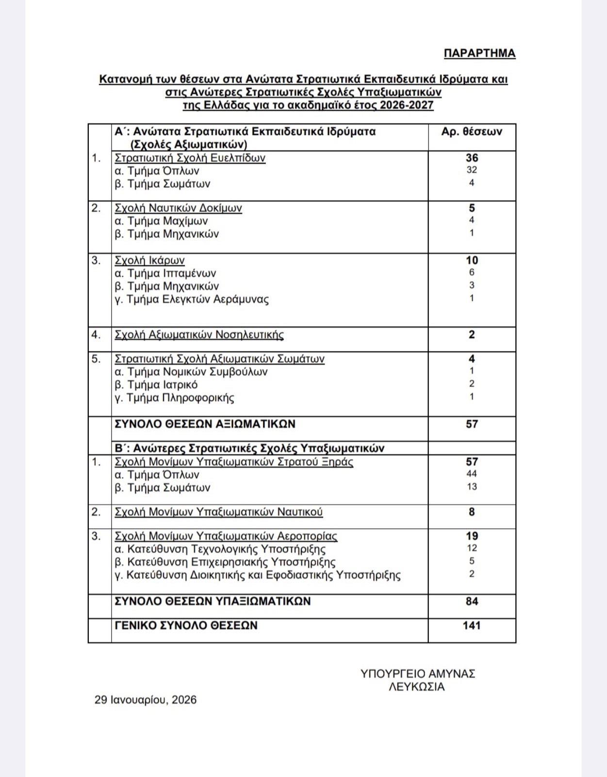 ΚΑΤΑΝΟΜΗ ΘΕΣΕΩΝ ΣΤΙΣ ΣΤΡΑΤΙΩΤΙΚΕΣ ΣΧΟΛΕΣ 2026